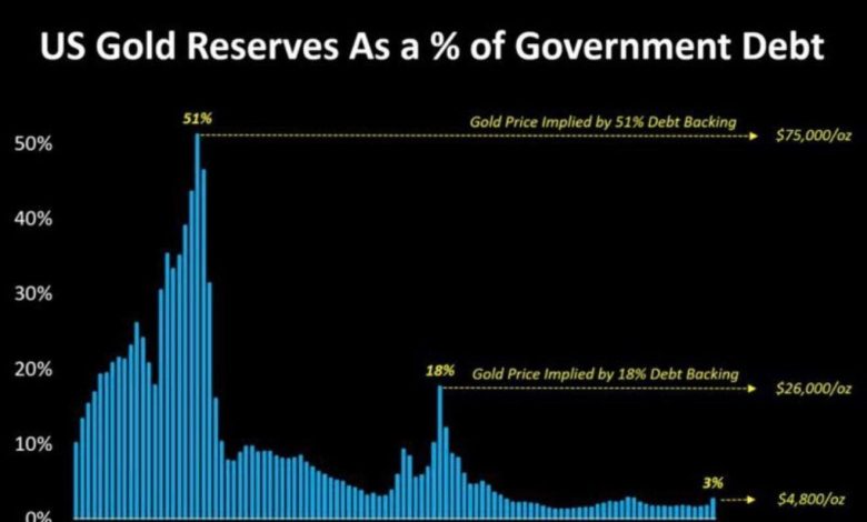 لطالما شكل الذهب مرآة عاكسة لصحة العملات الورقية. عام 1940، كان الاحتياطي الأمريكي من الذهب يغطي حوالي 51% من الدين الحكومي. بحلول 1980، انخفضت هذه النسبة إلى 18%. واليوم، رغم أن سعر الذهب يقترب من خمسة آلاف دولار للأونصة، فإن احتياطي الذهب الأمريكي لا يغطي سوى 3% فقط من الدين العام الهائل الذي تجاوز 38 تريليون دولار . لو أرادت واشنطن العودة إلى تغطية الذهب كما كانت قبل ثمانية عقود، لوجب أن يصل سعر الأونصة إلى 75 ألف دولار. هذا لا يعني أن الذهب رخيص، بل يعني أن الدين نما بشكل هائل لدرجة أنه لم يعد قابل للتغطية بأي أصل مادي على وجه الأرض.
